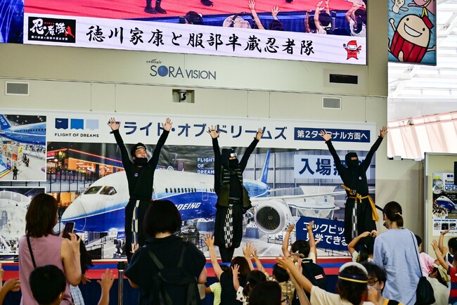中部国際空港株式会社は、航空会社および鉄道会社と連携し、「徳川家康と服部半蔵忍者隊」による出発便のお見送りなどおもてなしを実施します。この取組みは、当社がこの地域の魅力ある観光資源であるサムライとNINJAのゲートウェイとなることを目指して展開する、「サムライ×NINJA空港プロジェクト」において、毎月22日を忍者の日と定めて行う活動の一環です。