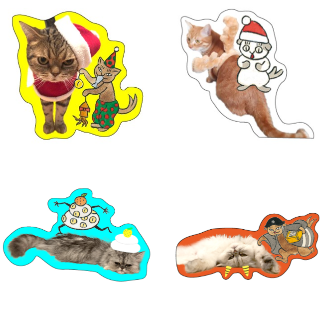 投稿写真と『ねこまたごよみ』の絵をコラボレーションした特製ステッカー。