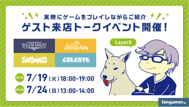 LIVE TV ハチスタ内にあるLIVEコーナーにて、Fangamer Japanスタッフでもあり、インディーゲーム実況者でもある「LayerQ」によるトークイベントを開催いたします。Fangamer Japanで取り扱うゲームタイトルを実際にプレイしながら、おすすめグッズの魅力をご紹介いたします!
