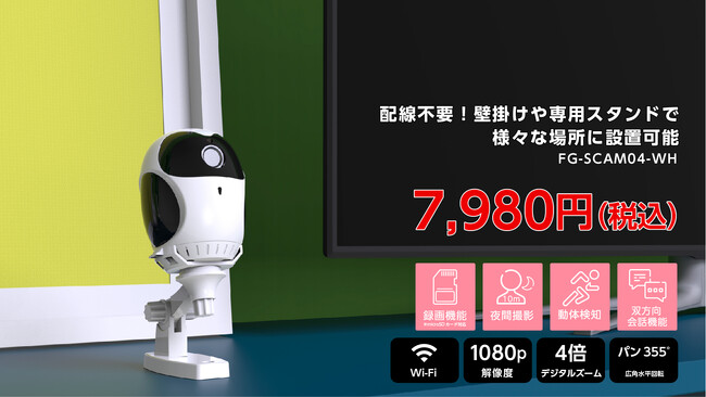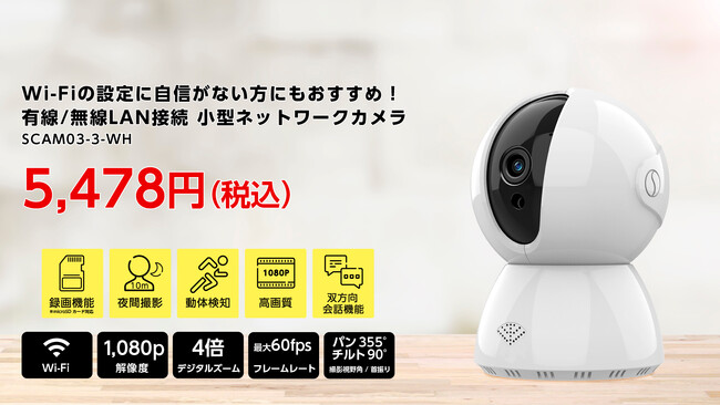 Wi-Fiの設定に自信のない方も簡単に接続可能 有線/無線LAN接続 小型ネットワークカメラ FG-SCAM03-3-WH 価格5,478円(税込)