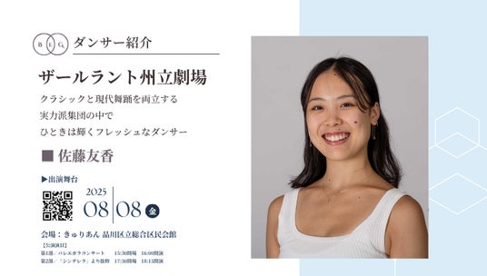 佐藤友香さんは第49回ローザンヌ国際バレエコンクール・ビデオ・エディションに参加し、コロナ禍ながらに日本はもとより世界各国から一斉に注目を浴びたダンサーの一人です。今回大阪公演へ出演の「小林愛里」さんや、現在パリ・オペラ座バレエ団で活躍中の「山本小春」さんと同じ年にローザンヌの舞台を踏み、切磋琢磨したダンサーです。その際にドイツのドレスデンパルッカダンス大学からスカラシップを受賞し、以後ドイツでのダンサー生活をスタートさせています。