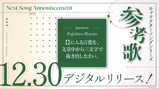 『補講男子』キャラソンシリーズ"参考歌"第5弾は、柏谷信と同ユニットに所属するWITHPER・国語担当の藤代晴仁 (CV.小林裕介) が歌唱する『【】に入る言葉を、文章中から三文字で抜き出しなさい。』!