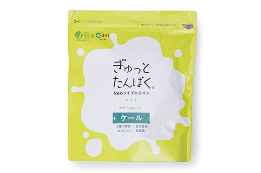 キューサイ株式会社(本社:福岡市中央区、代表取締役社長:佐伯 澄)は、不二製油株式会社(本社:大阪府泉佐野市、代表取締役社長:大森 達司)と、忙しい現代人の栄養補給をサポートする新商品「ぎゅっとたんぱく グリーンスムージー」を共同開発したことをお知らせいたします。本商品は、約70年に渡り大豆研究を続けてきた大豆たんぱくのスペシャリスト不二製油と、ケール青汁のパイオニアである当社とのコラボレーションによる、両社の強みを生かした手軽にゴクゴク飲める美味しいスムージーです。不二製油のECサイト「ソヤファームクラブ」等で2024年10月18日(金)より販売開始しますので、ぜひ毎日の栄養補給にご活用ください。