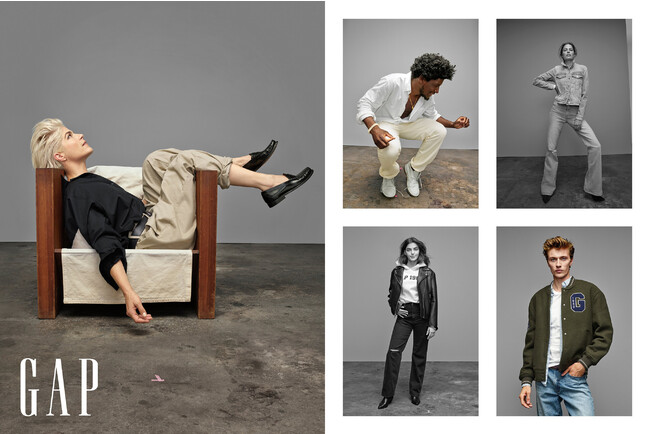 このキャンペーンはGapグローバルクリエイティブディレクターのLen Peltier(レン・ペルティエ)によるコンセプトを元に、Koto Bolofo (コト・ボロフォ)監督により制作されました。1969年以来スタンダードを定義し、何世代にもわたってスタイルを提供し続けてきたGap ICONSたちにオマージュを捧げています。「ICONS」キャンペーンのキャストたちは、90年代風ルーズオーガニックコットンデニム、ビッグホワイトシャツ、カーゴやプリーツ入りカーキ、70年代風ハイライズフレアデニム、クラシックなGapロゴフーディーなど、環境に配慮した素材と旬なシルエットやスタイルで、新しく生まれ変わったGapのアイコニックな定番アイテムを着こなしています。