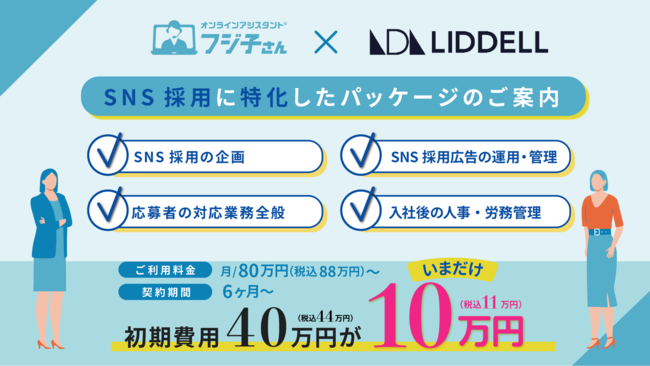 SNS・インフルエンサーマーケティング事業を展開するLIDDELL株式会社 (本社:東京都港区、代表取締役:福田 晃一、以下、リデル)は、オンラインアシスタントサービス「フジ子さん(R)」(https://fujiko-san.com/)を運営するBPOテクノロジー株式会社(本社:東京都中央区 代表取締役社長 :山田真也、以下、BPOテクノロジー)と連携し、2023年4月6日(木)よりSNSに特化した採用業務代行(RPO)サービス「SNS採用おまかせパッケージ」の提供を開始いたします。