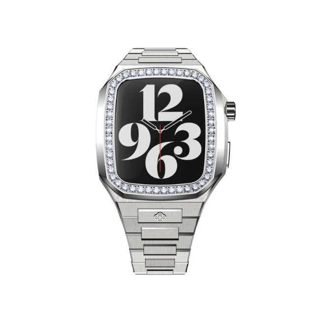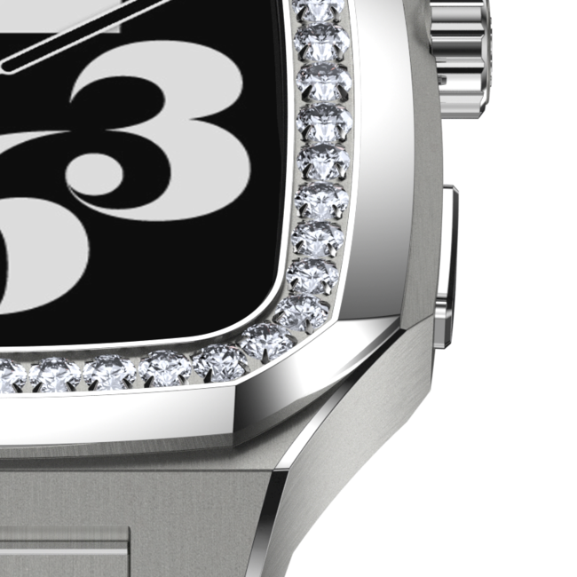 ベゼル全面にスワロフスキークリスタルがセットされた「EVD45」は、高級アップルウォッチケースを展開するゴールデンコンセプトの中でも、生産本数の少ないエクスクルーシブなモデルです。