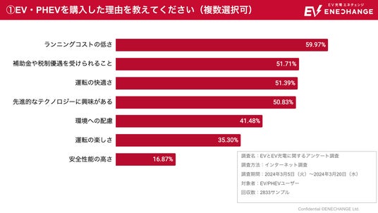 1.EVを購入した理由は経済的な理由が上位に!「ランニングコストの低さ」や「補助金や税制優遇」