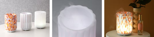 幻想的なミストが魅力の超音波式加湿器です。「もくもくモード」「通常加湿モード」「間欠モード」の3タイプからお選びいただけます。また、グラデーションライトの灯りも楽しむことができます。加湿を止めてライトのみで使用することも可能です。