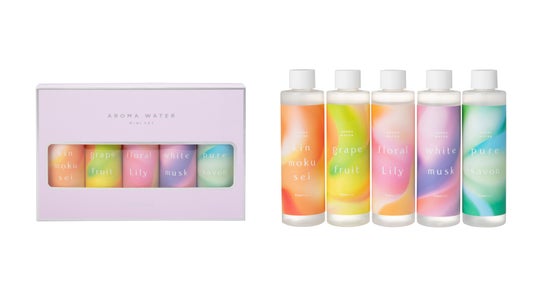 5つの香りが楽しめるアロマウォーターミニセットです。リビング、寝室など使用シーンに合わせて香りを変えて楽しむことができます。通常サイズを買う前のお試し用としてもおすすめです。