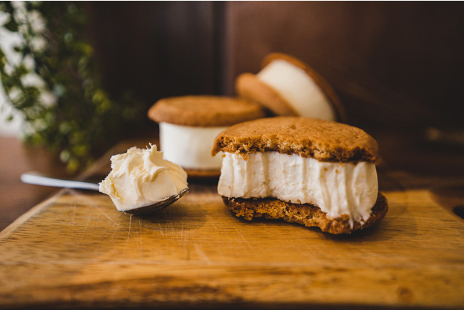 テーマは“片手で食べられる本格レアチーズケーキ”。レアチーズケーキのような濃厚なチーズクリームをしっとりクッキーで挟んだクッキーサンドです。中のクリームは濃厚かつふんわりクリーミーな食感で、シンプルな中にこだわりの詰まったチーズ専門店ならではのスイーツに仕上げました。むっちりとした見た目はボリューム感がありますが、中のレアチーズクリームはしつこさがなく、さっぱりと食べきれて満足度の高い仕上がりとなっております。