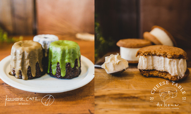 「CheeseTable at Home」からは“チーズ好きの方のためのチーズケーキをお届けしたい”という思いから生まれた「生カマンベールチーズケーキ」と、“片手で食べられる本格レアチーズケーキ”をテーマにした新商品「レアチーズケーキサンド」を今回のポップアップにて限定販売いたします。