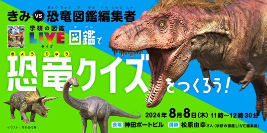 『学研の図鑑LIVE 新版 恐竜』を編集した松原由幸編集長に、こどもたちが自作の恐竜クイズで挑戦するイベントを開催します。その模様を「ほぼ日の學校」YouTubeチャンネルで生配信。視聴者の方からリクエストされた恐竜を描く、イラストコーナーも実施予定です。図鑑の編集長ならではの制作秘話もたっぷり聞けるのでおたのしみに!
