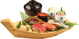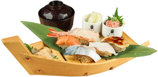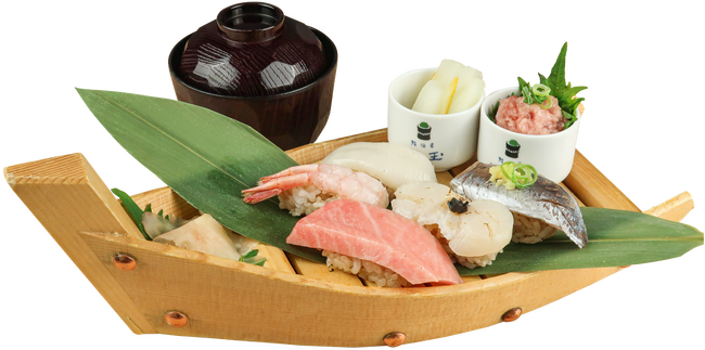 ※写真の盛り合わせ内容は、まぐろ・サーモン・〆さば・うなぎ・軍艦いくらとなります。
