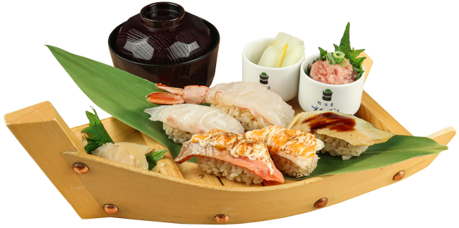 ■内 容:サーモン(炙りチーズ)・海老(炙りチーズ)・穴子・鯛(塩レモン)・赤海老
