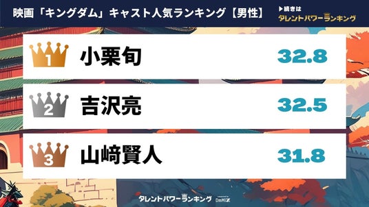 今回ランキング第344弾として、映画「キングダム」に出演しているタレントランキングを発表。