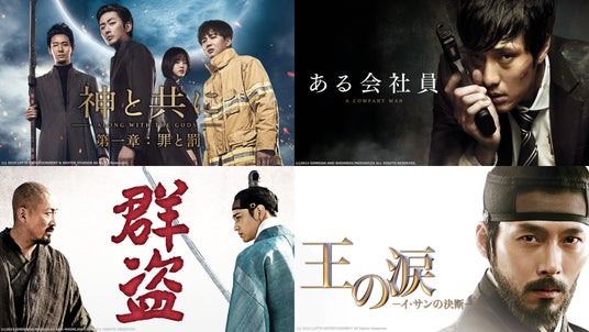 カン・ドンウォン主演の悪徳領主や腐敗した役人に対する反乱を起こし、民衆を救おうと奮闘する義賊の姿を描いたアクション時代劇『群盗』(2014)、ヒョンビン主演の李朝第22代国王イ・サンの実在の暗殺ミステリーをもとに描かれた『王の涙 -イ・サンの決断-』(2014)といった迫力満点の作品も勢ぞろい!