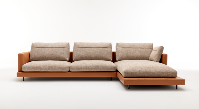 「SINA」の最大の魅力は、お好みのパーツを組み合わせ、空間の自由度を高めるモジュール性にあります。パーツは27種類を取り揃え、ベースのフレームおよびクッションの張地は、ファブリック約200種・レザー約80種と豊富なバリエーションからお選びいただけます。さらに座面の奥行きや高さ、背クッションの仕様、脚部の色などに至るまで、さまざまなオプションがあり、住まう人のお好みやライフスタイルに寄り添った理想のソファを実現します。