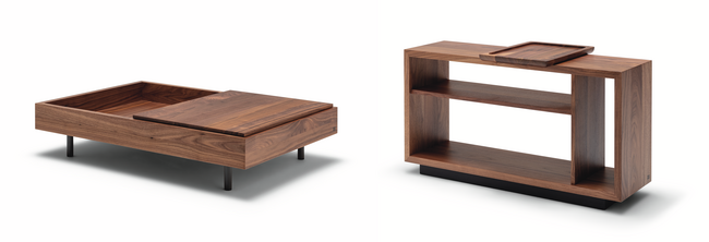 同シリーズのリビングテーブルとシェルフも展開しています。