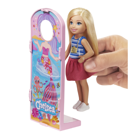 5つの遊び場と観覧車、カラフルなバンパーカー、ゲームブース、風船スタンド、フォトブースなどお子さまの夢を詰め込んだ遊園地のごっこ遊びを楽しめるプレイセットです。観覧車はチェルシーを3体まで座らせることができ、実際に回転させて楽しむことができるのはもちろん、ピンクと水色のカラフルなバンパーカーは、本物さながらのデザインと車輪が特徴で押すと動くので、リアルなごっこ遊びが楽しめます。その他、景品付きのゲームブースや、カラフルな風船がならぶ風船スタンド、マーメイドになりきれる顔はめパネルなど、チェルシーの夢の中のような幻想的な世界観を楽しめます。