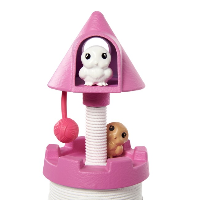 バービー(R)プリンセス・アドベンチャー™にインスパイアされたキュートなプリンセスファッションのチェルシー、4匹のペット、そして3階建てのペットのお城のプレイセットです。ペットサイズのバスタブ、グルーミングブラシなどのアイテムで、ペットのお世話遊びができるのはもちろん、チェルシーやペットがすべれるすべり台などもついており、様々なシチュエーションのごっこ遊びを楽しめます。