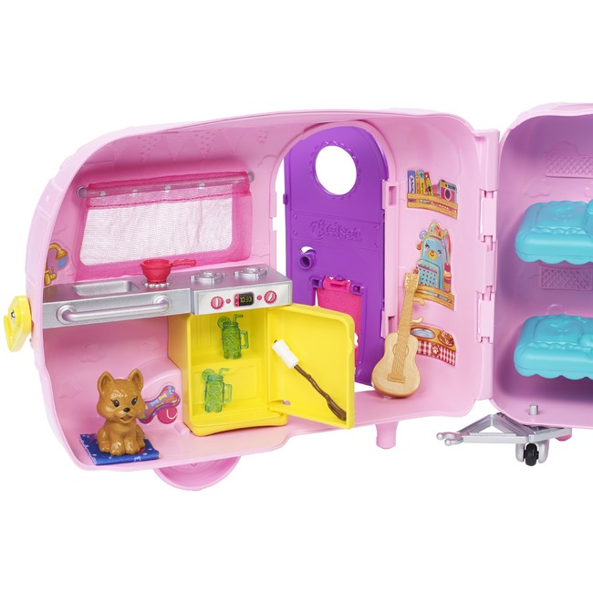 【バービー チェルシーとたのしいキャンプ ギターもたきびもたのしめる キュートなくるまとトレーラーのセット 詳細】