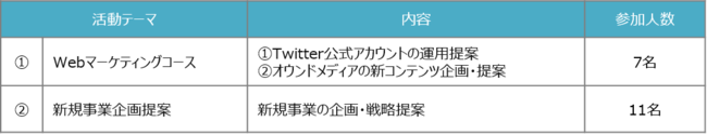 当企画は就職に意欲的な学生を支援することを目的に、2016年より継続開催しております。本年度は「Webマーケティング」と「新規事業開発」の2つをテーマとして、それぞれ課題解決に向けた活動を行いました。なお、参加者については全国の大学より募集し、以前より交流のある産業能率大学を中心に、合計18名(男性8名、女性10名)がインターンシップに参加いたしました。