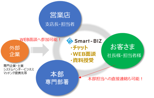 ・法人・個人事業者のお客さまと営業店担当者・本部専門部署との間でできる非対面コミュニケーションサービスです。