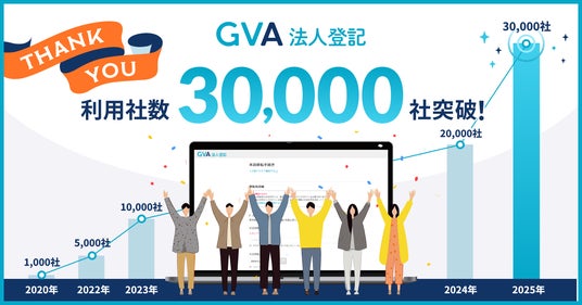 リーガルテックサービスの開発・運営を行うGVA TECH株式会社(本社:東京都渋谷区、代表取締役:山本 俊)が運営する法人登記クラウド「GVA 法人登記」は、累計利用社数がこのたび30,000社を突破したことをお知らせいたします。