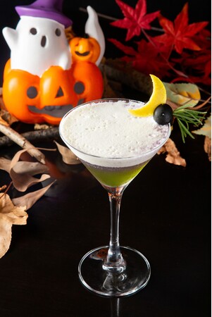 昨秋オープンした「THE BAR」では、初めてハロウィン期間限定のカクテルをご用意いたしました。お化けが集まる暗黒の世界にある山が噴火して、溶岩が流れ出る様を表現したロングカクテル。夜明け前の空と雲をメロンリキュールやクリーム等で、ホウキに乗る魔女を黒オリーブやローズマリー等で表したショートカクテル。2種類のカクテルでハロウィン気分を盛り上げます。また、リキュールを使用しないモクテル(ノンアルコールカクテル)もご用意いたしますので、アルコールが苦手な方もお楽しみいただけます。