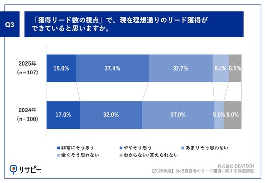 ■41.1%が獲得リード数の観点で、理想通りの獲得が「できていない」と回答、2024年比0.9ポイント減少