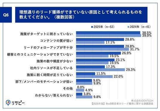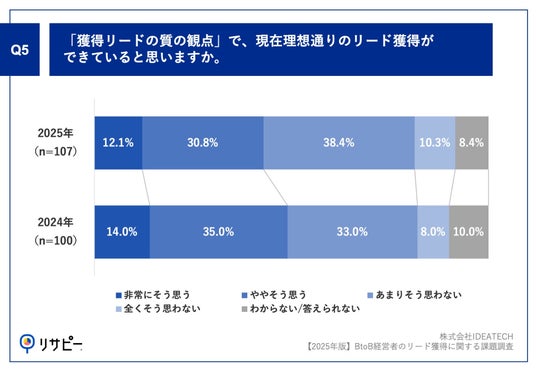 ■約半数が、リードの「質」の観点で、理想通りの獲得ができていないと回答、2024年比7.6ポイント増加