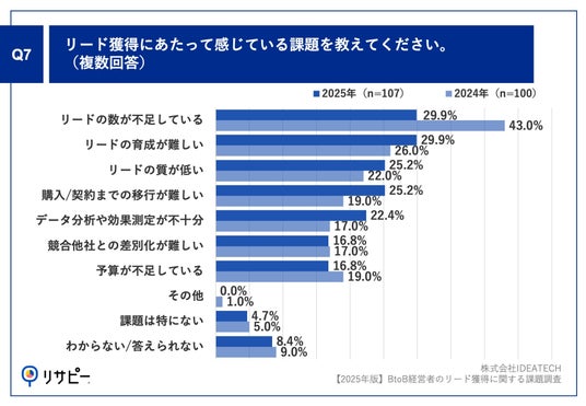 - 02|48.6%が、リードの質の観点で理想通りの獲得が「できていない」と回答、2024年比7.6ポイント増加