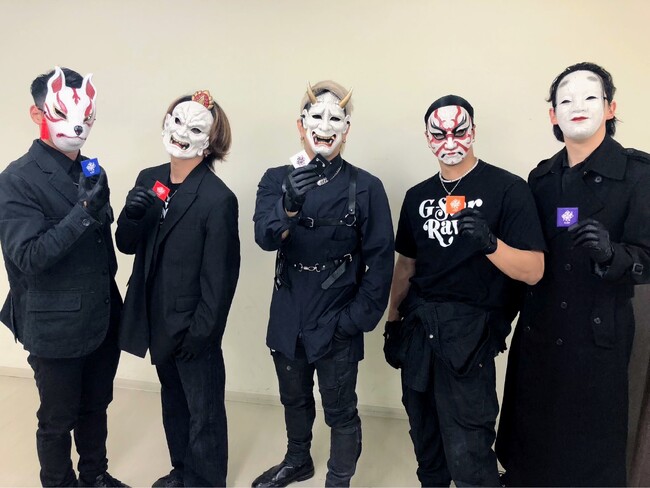 メンバーは、左から狐、阿形、般若(リーダー)、隈取、おかめ。