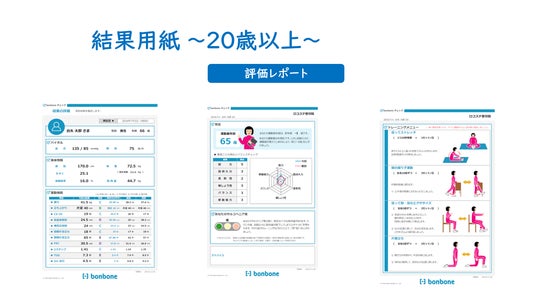 今回、成果発表会として、当社の運動器年齢の数値化システムである「bonbone check」(握力、柔軟性、バランス感覚など7項目を測定するシステム)を活用し、訪れた生徒やその家族、友人たちの運動器年齢を測定しました。幅広い年代の方に体験していただき、2日間で300名以上の測定を行いました。