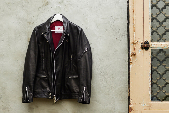 50-60年代にイギリスの若者の間で流行したセンタージップタイプのレザージャケットを彷彿とさせる「カールトン」。他のライダースジャケットよりも、ゆとりを持たせたパターンに設計されており、リラックスした雰囲気で着用可能です。