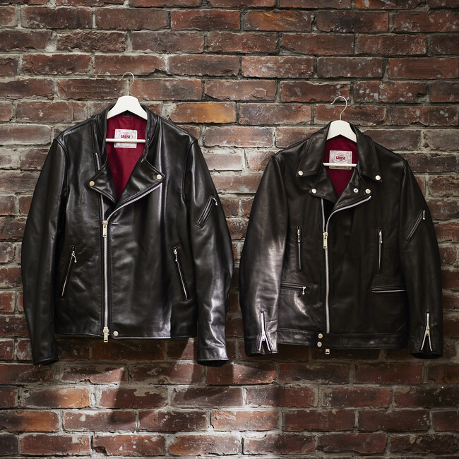 ジェームスグロースの代表的なモデル。「リカルド」は、フロントジップを閉めればシングルライダースのようにも着用可能。「ニューマニラ」はオーセンティックな風格のダブルライダースです。どちらも英国のモーターサイクルウェアの歴史を感じさせるデザインが特徴です。