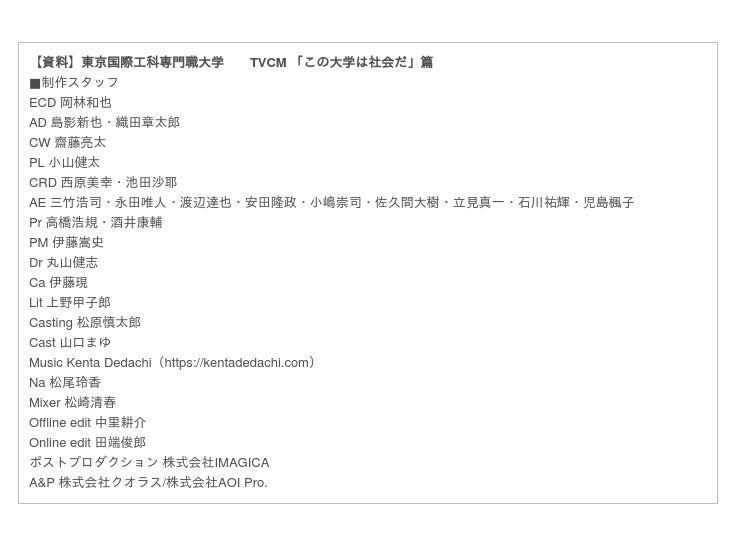 日本初の「情報系」専門職大学として開学した「東京国際工科専門職大学」の新TVCMが、5月1日(日)より全国で放送を開始します。それに先駆け、4月4日(月)よりホームページで先行公開をスタートしました。