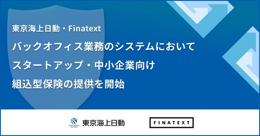 東京海上日動火災保険株式会社(本社:東京都千代田区、取締役社長:城田 宏明、以下「東京海上日動」)、株式会社Finatext(本社:東京都千代田区、代表取締役CEO:木下 あかね、以下「Finatext」)は、人事総務や法務、会計などのバックオフィス業務のシステムに組み込んで保険加入いただけるプロセスを共同開発しました。2024年6月から、株式会社SmartHR(本社:東京都港区、代表取締役CEO:芹澤 雅人)とフリー株式会社(本社:東京都品川区、CEO:佐々木 大輔)のサービス上で加入できる、スタートアップや中小企業向けの保険を、両社のユーザー向けに提供開始します。