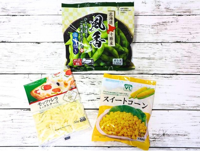 3:チーズの上に、[1]の枝豆と『スイートコーン』を適量敷き詰め、トースターで5~6分、焼き色がつくまで加熱する