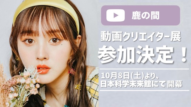 C Channel株式会社(本社:東京都目黒区、代表取締役社長:森川 亮)所属の美容動画クリエイター“鹿の間(しかのま)”が、10月8日から日本科学未来館(東京都江東区)で開催される特別展「動画クリエイター展」(日本科学未来館・産経新聞社主催)に参加することが決定いたしました。