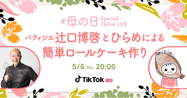 また、「#TikTokバレンタイン」イベントでコラボした世界的パティシエ辻口博啓シェフによるTikTok LIVE第二弾も予定。今回はシンガーソングライターとして活躍し「ポケットからきゅんです」で話題となったひらめさんをお招きし、母の日におすすめのロールケーキ作りを開催いたします。普段はパティシエの顔をもつひらめさんの新たな一面は初公開となりますので、ぜひお楽しみに!