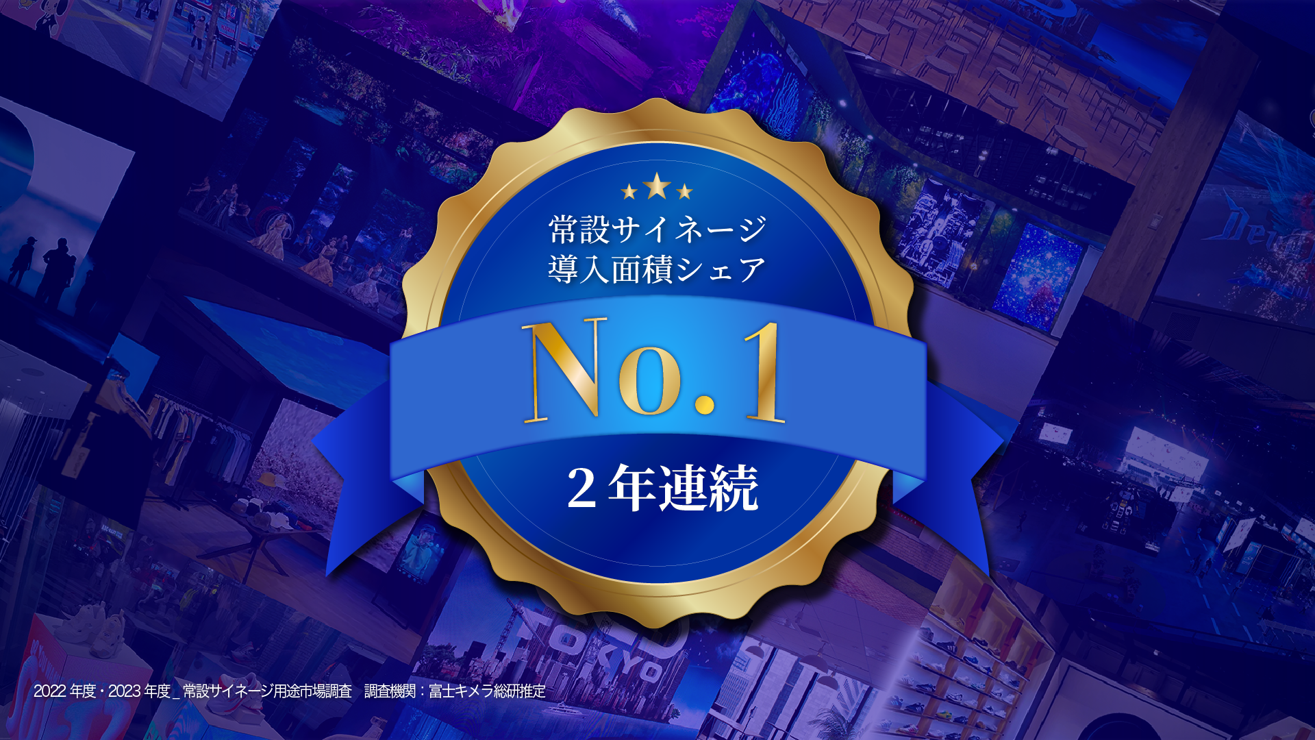 LED TOKYO株式会社は、株式会社富士キメラ総研による「デジタルサイネージ市場調査2024」内で、「常設サイネージ用途におけるLEDディスプレイ導入面積」でメーカーシェア1位を獲得しました。