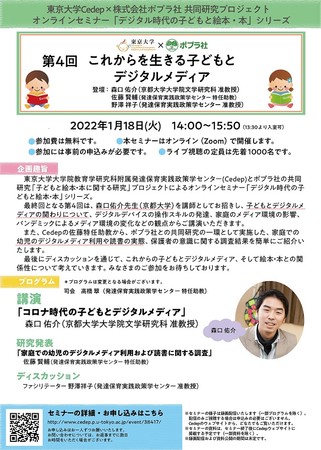 東京大学Cedep×ポプラ社共同研究プロジェクトオンラインセミナー「デジタル時代の子どもと絵本・本」シリーズ 第3回「これからを生きる子どもとデジタルメディア」企画主旨
