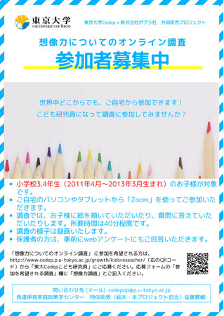 共同研究「想像力についてのオンライン調査」参加者募集中【小学校3・4年生のお子様と保護者】
