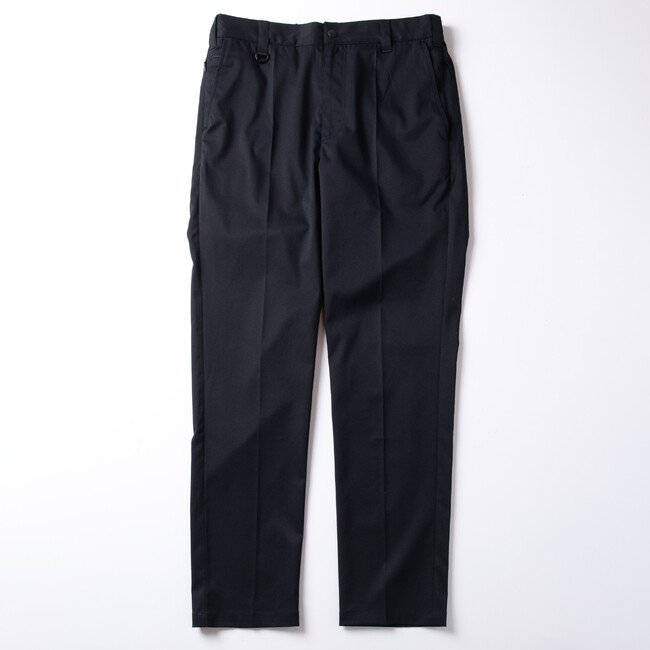 また、自社開発素材「ultimex/アルティメックス」を使用し、丸洗い可能で部屋干しでも数時間で乾く速乾性とシワになりにくい機能性を備えています。伸縮性があるためフライトや長時間移動でもストレスなく着用でき、汚れがつきにくい撥水加工により作業時についた汚れもサッと落とせます。