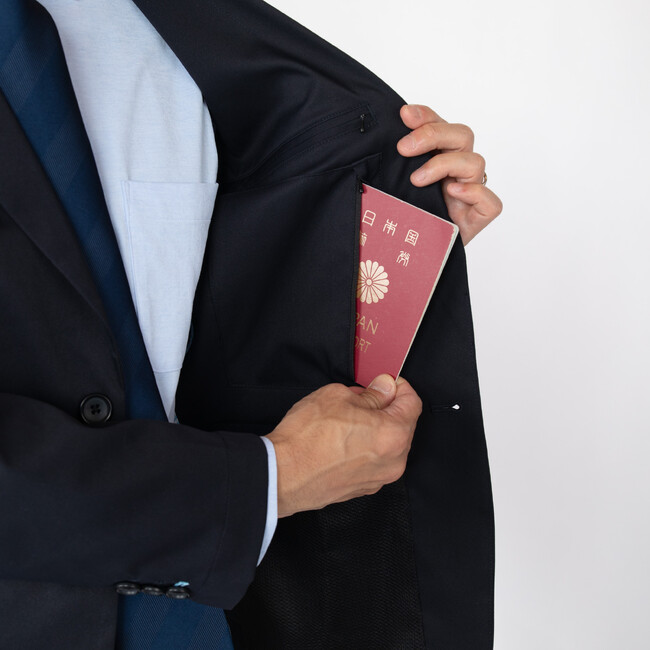 国際協力とは世界平和と発展のため、経済や教育、インフラなどの様々な分野で各国を支援する活動です。活動内容は多岐に渡り、農村や水道施設で作業着を着用しての作業が求められる一方で、大使館訪問などフォーマルなスーツの着用が求められる場面もあります。支援先には発展途上国が多く、水道環境が整っておらず衣類洗濯の際に困ることや、治安が良くないためスリなどの軽犯罪に巻き込まれることがあります。それらの悩みを解決するため、南京錠がつけられる内ポケットやパスポート専用ポケット、外見上分かりにくい隠しポケットを多数配置し、外部から盗られにくい向きにファスナーを設置しました。