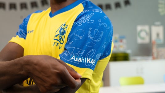 「シント=リタ小学校の生徒たちと一緒に、彼らにとってSTVVとはなにかについてブレインストーミングを行いました。例えば、生徒たちは大きなスタジアムや、『人々と炎』というスローガン、そして日本にちなんだイラストを描きました。彼らのクラブ愛と斬新なアイデアが、袖のユニークなパターンに繋がりました。子どもたちと協力し、彼らのインスピレーションを活用することで、未来を祝福するシャツを作り上げました」