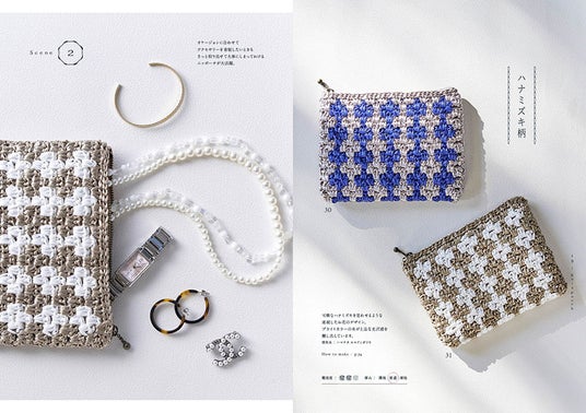 ハンカチを編むテクニックでポーチができる! 見ているだけでも可愛い111作品を収録