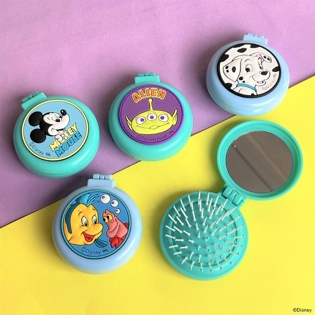 『101匹わんちゃん』に登場する「パディータ」のミラー付コンパクトブラシは、公開60周年を記念し昨年10月に販売した『101匹わんちゃん』の商品シリーズとも一緒に使ってもらえるよう、同じくすみブルーを取り入れたデザインに仕上げています。