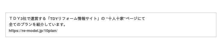 TDY3社で運営するホームページ「TOTO・DAIKEN・YKK APリフォーム情報サイト」内の“十人十家”ページや関連コンテンツ「あこがれのくらし診断」に最新の5プランの情報を追加し、展開いたします。また、全国13箇所に展開している「TDYコラボレーションショールーム(内、5箇所はTYコラボレーションショールーム)」のエントランスに設置している「“十人十家”ギャラリー」においても、5プランを追加した充実のコンテンツでお出迎えいたします。